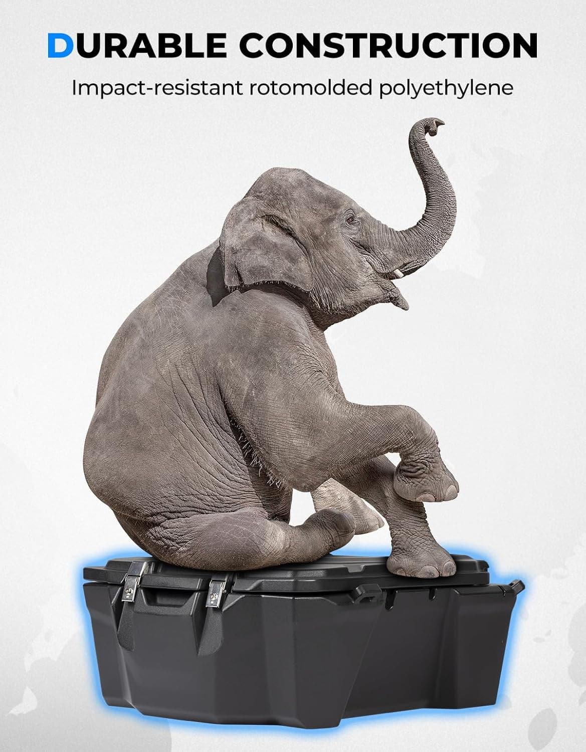 The 100L ( (26.4 Gallons))Storage Bin provides ample room for organizing essentials such as gloves, first aid kits, and tools, along with travel items like repair parts and clothing, making it ideal for long rides.