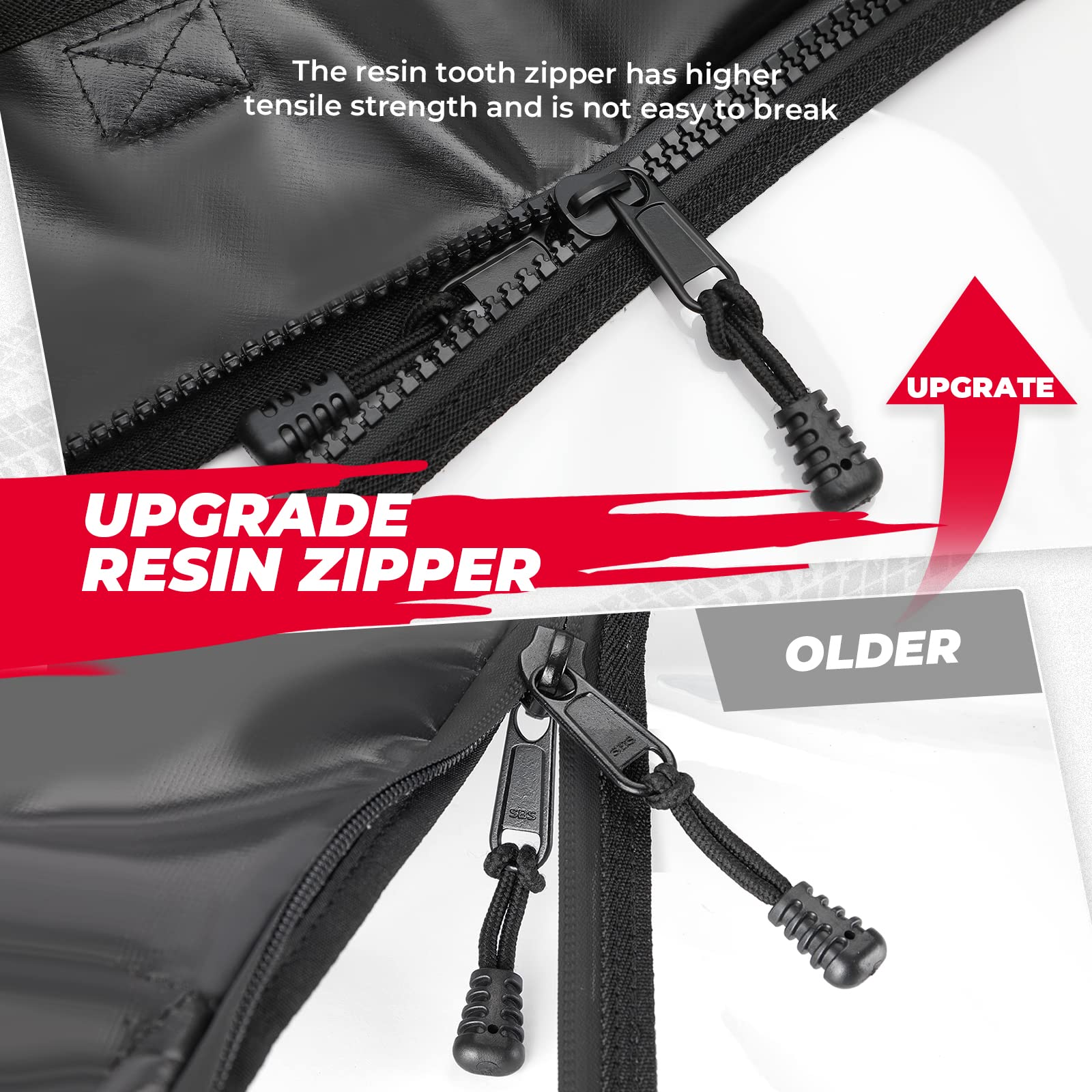 We improved our cab enclosures based on previous customer experience by replacing nylon zippers with resin zippers. The resin tooth zipper has higher tensile strength and is not easy to break, and smooth even if the mud sticks to it will not jam, so you do not have to worry about the zipper easily broken!