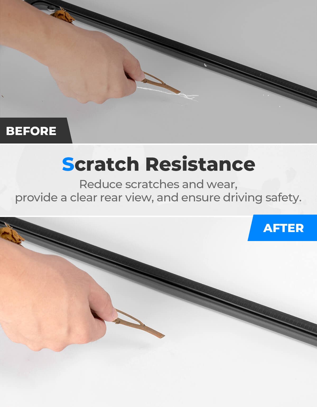 The sealing rubber strips equipped on the rear windshield effectively reduce engine and road noise and offer excellent waterproof performance.