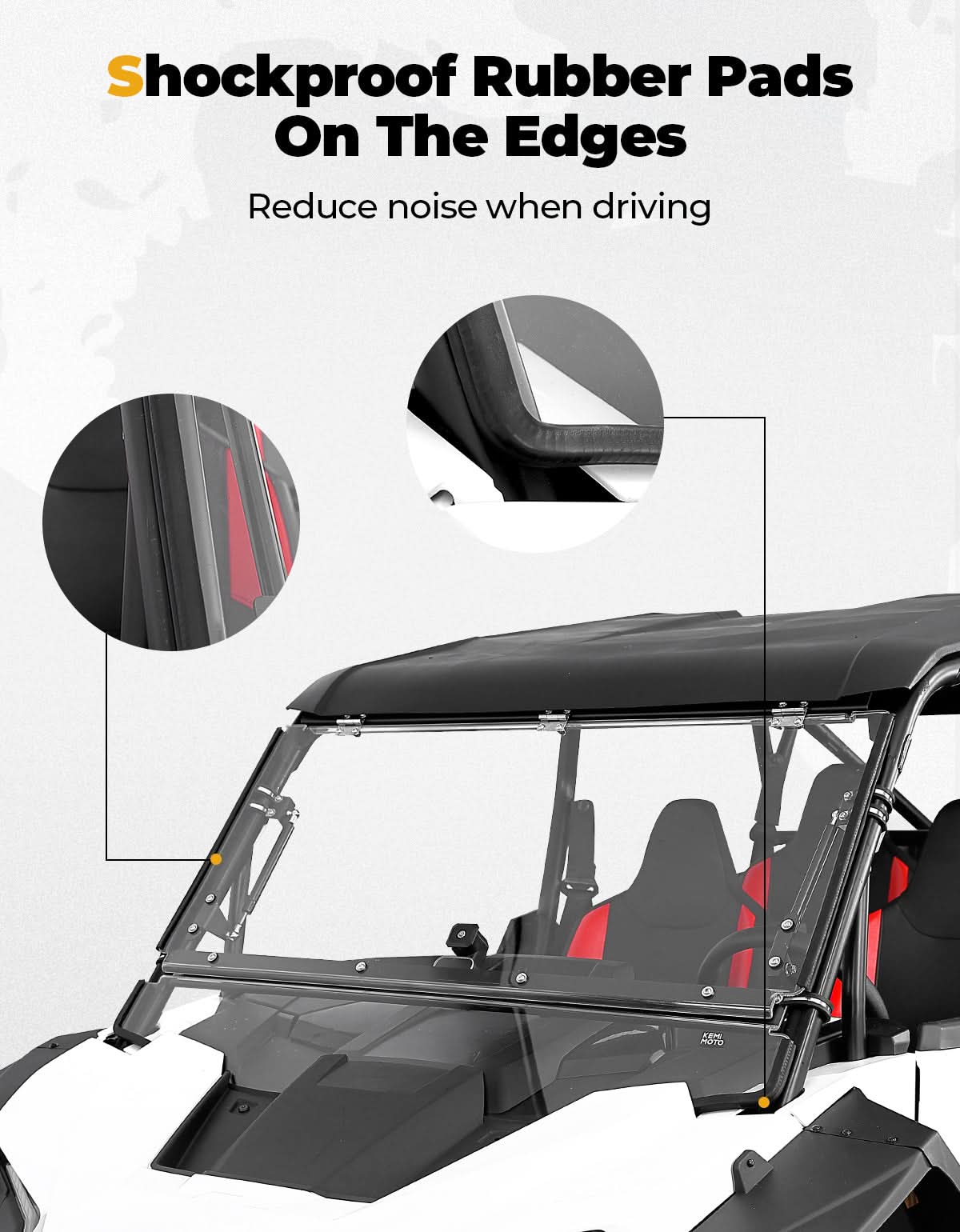 Crafted from 1/4" polycarbonate, this flip-up windshield is exceptionally strong¡ª300X more robust than glass. It also includes anti-vibration rubber pads at the bottom, ensuring a snug fit for your UTV and protection during rough rides.