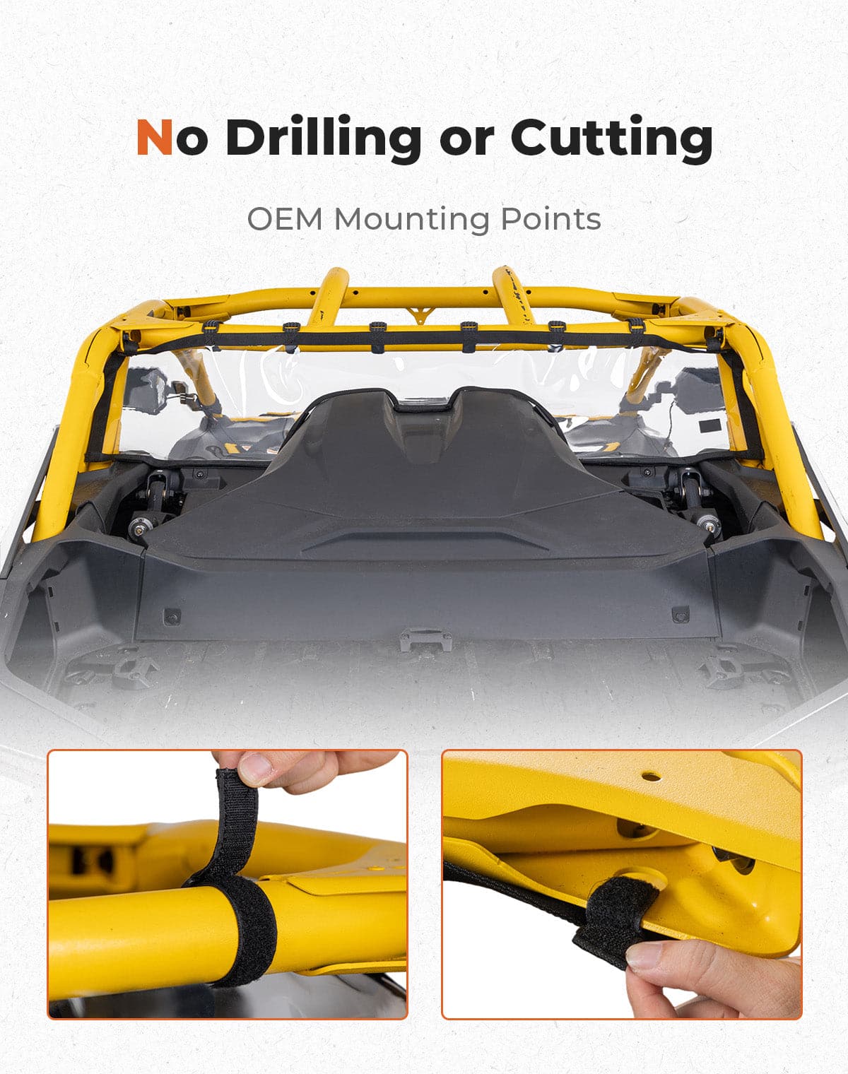 Forget about drilling or needing specialized tools¡ªinstallation is a breeze. Simply use the provided non-slip strips to attach the rear window quickly and easily to your UTV, enhancing your vehicle with minimal effort.