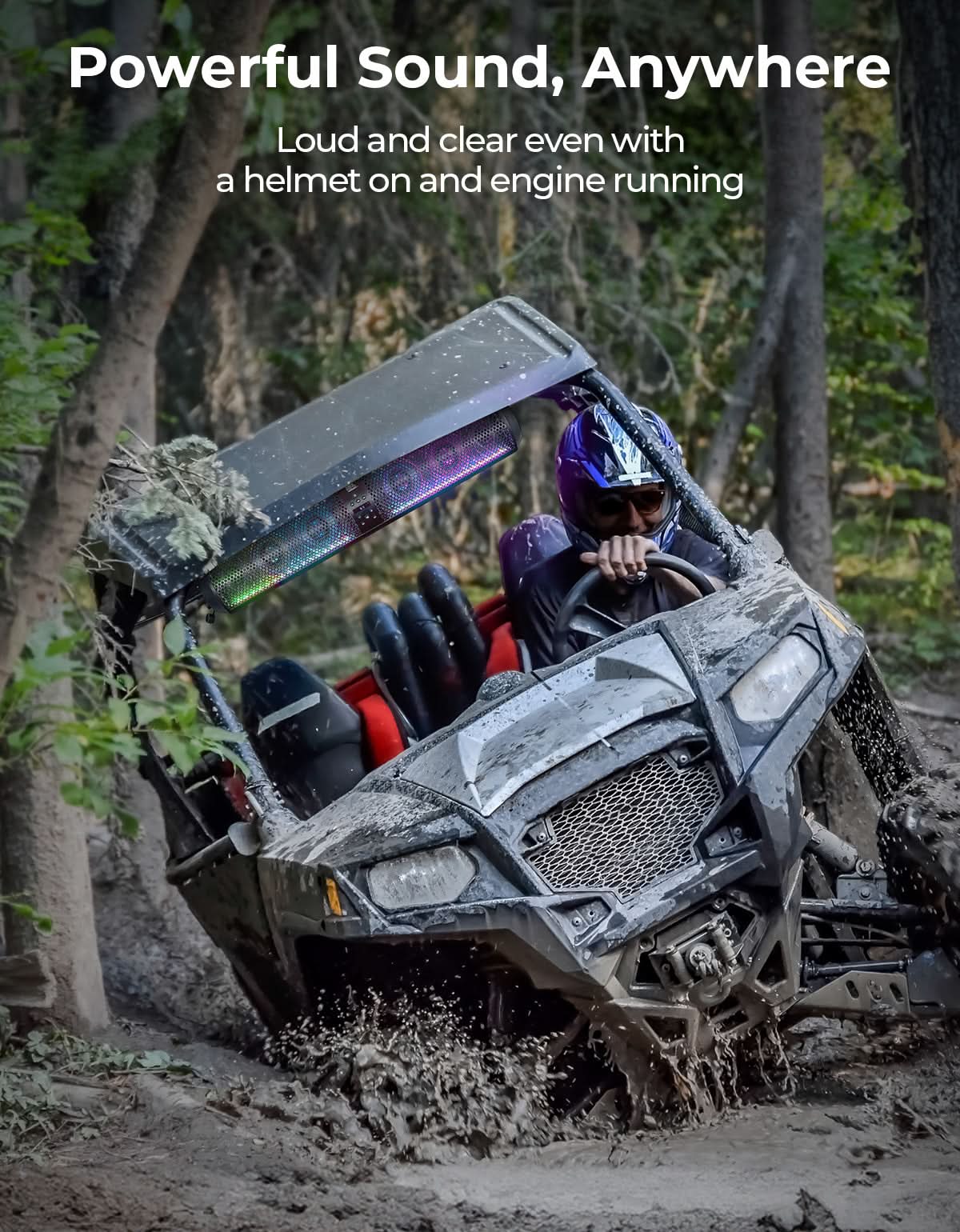UTV Bluetooth Sound Bar – 32' RGB Speaker, IP66 Waterproof 2025 | Fits 1'-2' Roll Bars on Polaris RZR, Can-Am, SxS, Golf Carts