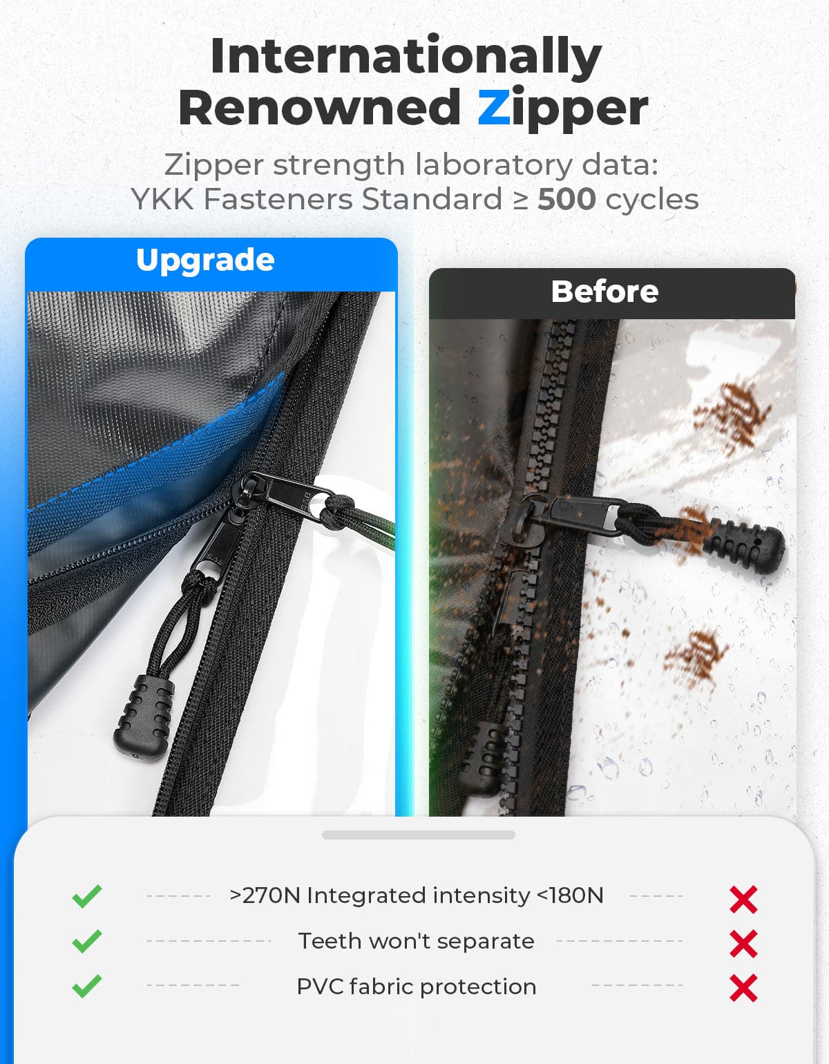The windproof features waterproof transparent PVC, you can roll up the PVC window film separately with straps, not the whole from the bottom. You can zip up the window for maximum protection or unzip it to increase airflow and visibility. In this hot summer, a breeze blowing onto your face from behind is such a refreshing thing.